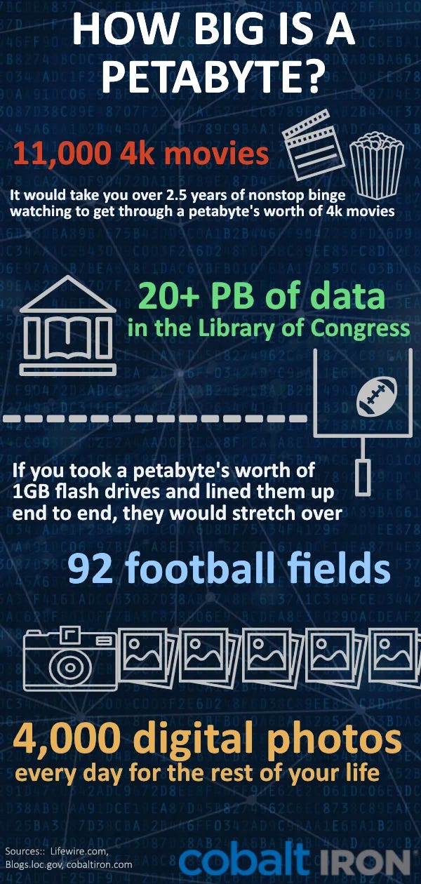 Using 10 petabytes of data would be equal to watching 25 consecutive years’ worth of 4K movies.