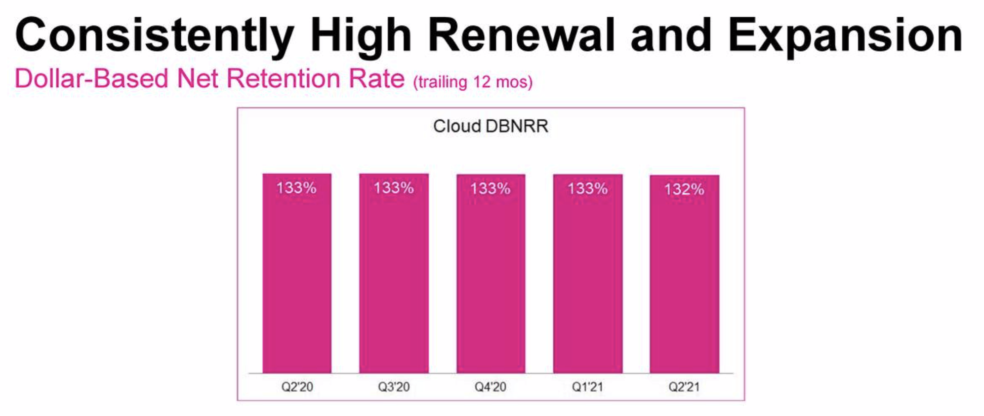 Boasts >130% net dollar-based retention rates. Over 80% of license bookings are from existing customers.