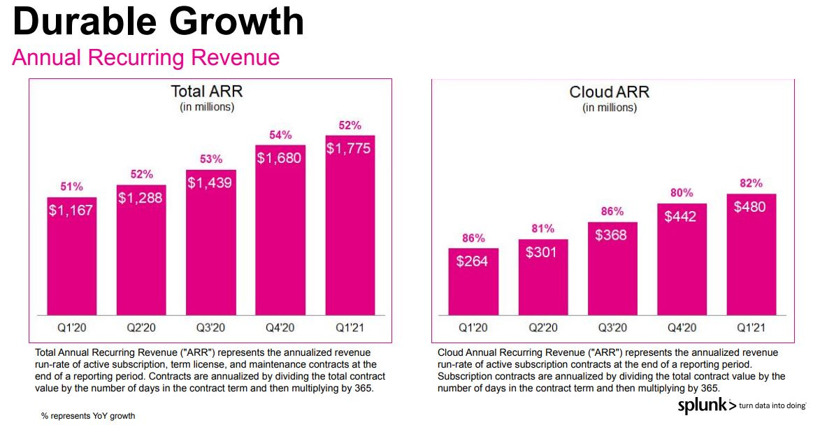 Splunk’s recent quarterly slideshow ith important growth figures: https://investors.splunk.com/static-files/f5a765ef-82cf-4ac0-a998-0f5966a5fd46
